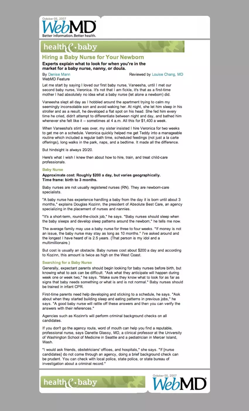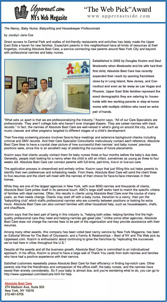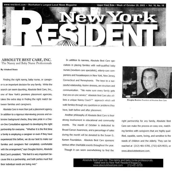 When the media has questions about the childcare and household staffing industry, they rely on Absolute Best Care for expert insights. Our award-winning service and commitment to quality make us a trusted resource for understanding industry trends and best practices.